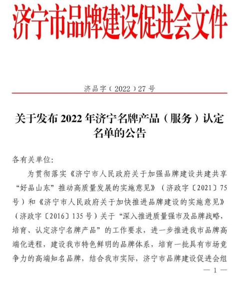 好事成雙,捷報頻傳,近日,濟寧市品牌建設促進會公布了2022年度濟寧名牌產品(服務)認定名單?!安┠軝z測”順利入選,被評為2022年度濟寧名牌產品。
